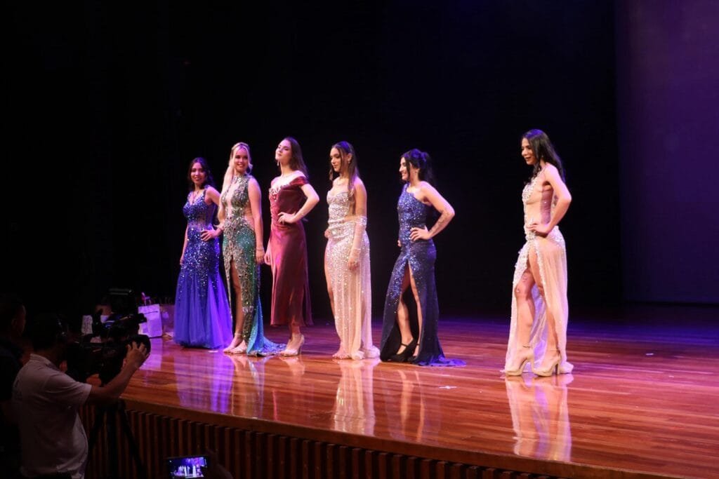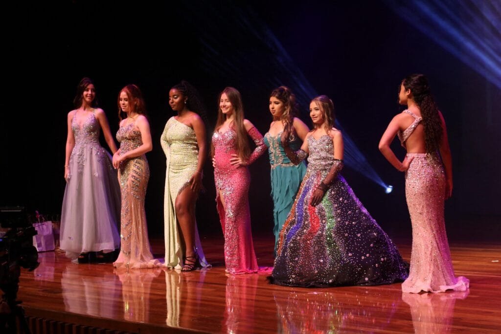 Em seguida, os candidatos desfilaram “Os trajes de gala apresentados na passarela foram assinados pelo renomado estilista Adriano Moran, que trouxe sofisticação e tendências atuais para os looks , levando ao palco a diversidade e o estilo característicos do evento.